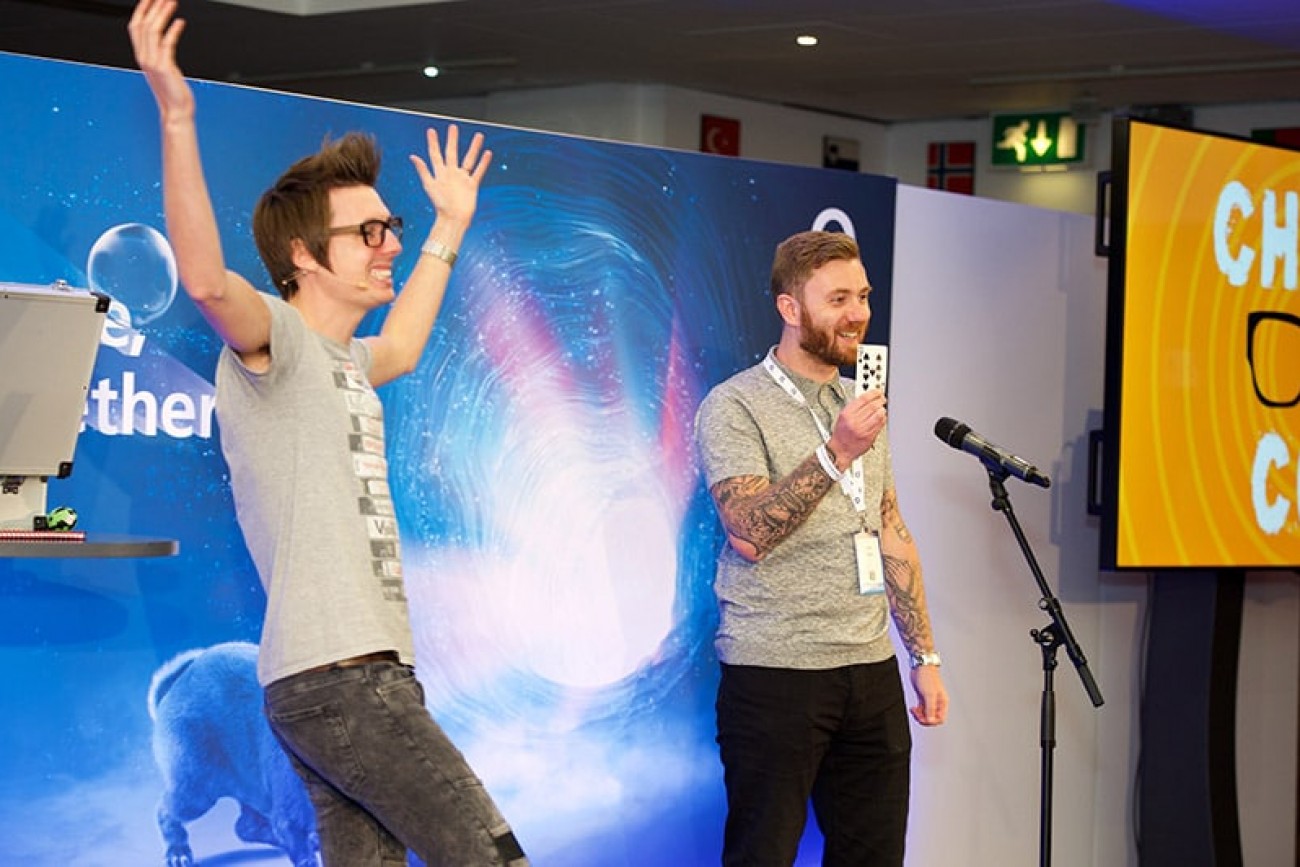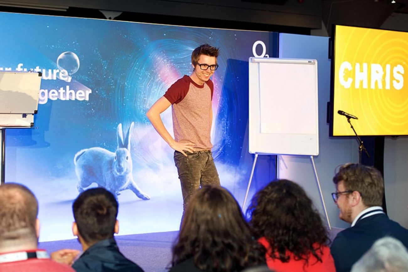 Chris will mix the very best of his multi-award-winning live mind-reading act with the sorts of things you’ll have seen him do on TV to make your event one that people will be talking about for a long, long time. He will create something bespoke with your specific audience in mind, whether it’s mind-reading corporate entertainment, positive keynotes which can deliver real results from your people, or just delivering an energy hit to tired delegates with a truly interactive, funny and engaging set. Full of audience participation, this hugely visual and engaging form of mind-reading will have your audience in stitches whilst simultaneously amazed that Chris knows exactly what they’re thinking. As a unique corporate speaker his enthusiasm and charm will leave your audience on a high and can offer real business-centric learnings to help your company and people grow.