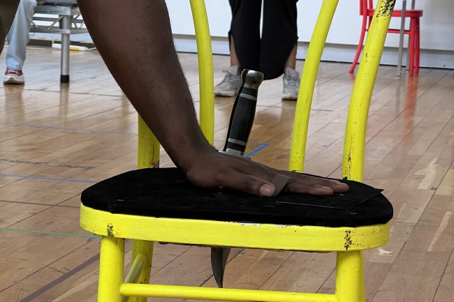 Working with director Matthew Xia and designer Ultz, Chris Cox was brought into the team to bring an impossible piece of script to life. Designing an illusion which allowed the actors to stab their hand through a chair, hold the chair in mid-air with the knife through their hand before having it pulled off. Problem solving a challenging effect through various prototypes and collaboration Chris created an effect which got gasps in every performance.
